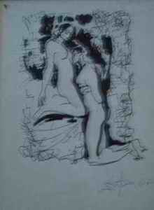 Although colour is not central in this technique, Dimiter Kirov successfully performs it, mostly in the styles of portrait and interior. Contemporary inks enable the master to perform graphic portraits in porcelain and other surfaces. As a result many restaurant owners in Paris have obtained graphic works by DiKiro, where the drawing is fixed on the porcelain by a special spray.Painting - graphical (black and white drawing)