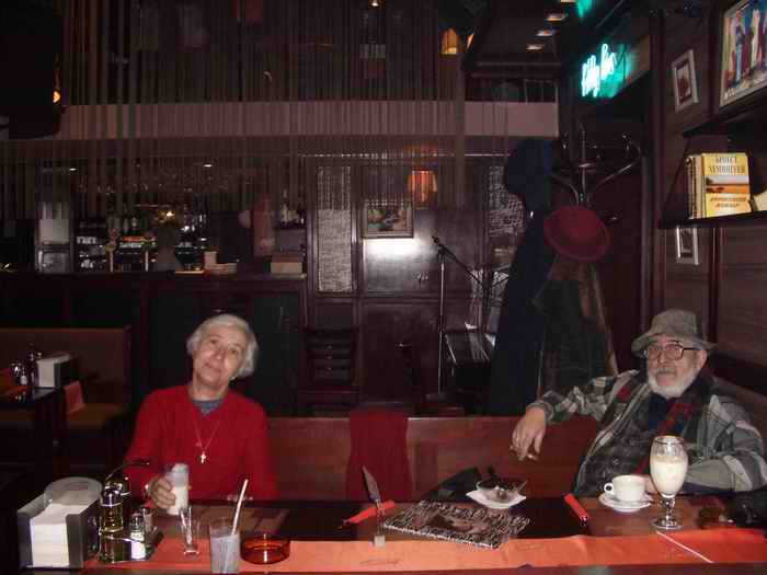 Just a few steps away from the Town Hall square, Hemingway, on Gurko str., was among DiKiro's favourite spots for a quick working lunch. His works could be seen on the walls, and his favourite table - close to the Hemingway books' shelve, next to the piano, where Dimiter Kirov could enjoy a live performance of his favourite classical pieces and French chanson. The late master with wife and muse Roussalia is pictured below.